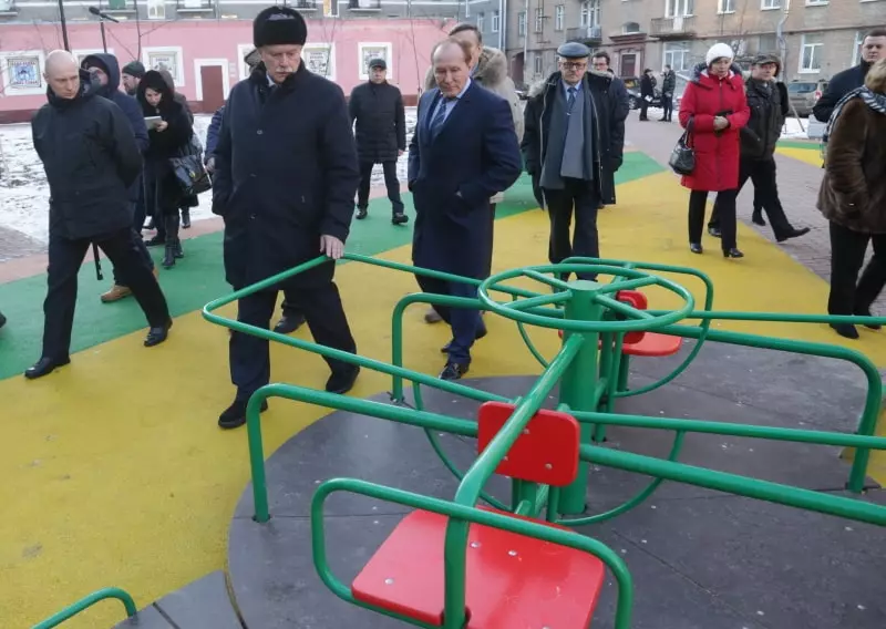Новую спортивно-игровую детскую площадку внимательно осмотрел Георгий Полтавченко. Идеей и реализацией градоначальник остался доволен. Он также посоветовал установить дополнительное освещение на детской площадке, чтобы на ней можно было играть и в темное время суток. Также губернатор положительно оценил силовой детский спортивный комплекс, где на кольцах могут подтягиваться и дети на колясках.