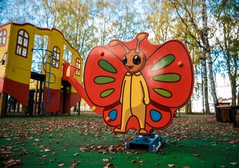 Также на площадке установили качалки в виде "Петушка", "Бабочки" и конечно, "Кораблика". Все изделия выполнены из высококачественных материалов и надежно установлены. Балансир – для веселой игры и развития коммуникативных навыков, а также качели, ведь какая детская площадка обойдётся без качелей? Прочные из металлической рамы с подшипниковым узлом, благодаря чему, если будет срыв, ребёнок не упадёт и не повредит себе ничего, т.к. узел является страховочной петлёй.