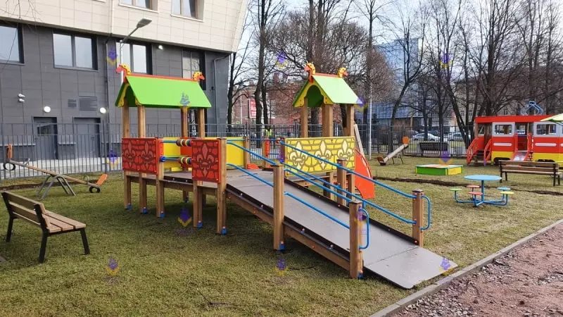 Игровые комплексы для детей с ОВ ещё на этапе создания продумывается в них всё: возможность подъёма ребёнка на комплекс на коляске, угол наклона, а также высота поручней и их расположение. Комплексы делают разных видов: как тематические в виде кораблей и машин, так и простые с домиком и подъёмом наверх (или лестницей). Все полы изготавливаются из специальной влагостойкой фанеры с антискользящим покрытием, для большей безопасности детей. Почти на каждом комплексе вы сможете найти игровые или развивающие элементы, чтоб ребёнок, играя на площадке, учился новому и познавал мир через игровую форму.