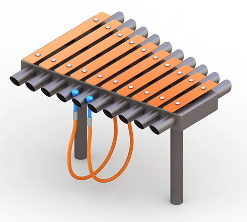 Металлофоны. Оригинальный и необычный развивающий элемент игровой площадки. Можно сказать новинка 2019 года в мире детского игрового оборудования. Благодаря нему, дети с радостью будут открывать и познавать себя в мире музыки. Металлофоны сконструированы по типу обычных ксилофонов с двумя палочками для игры, прикрепленном на самом изделии. Звук будет яркий и звонкий и точно соберёт вокруг себя толпу ребятни!