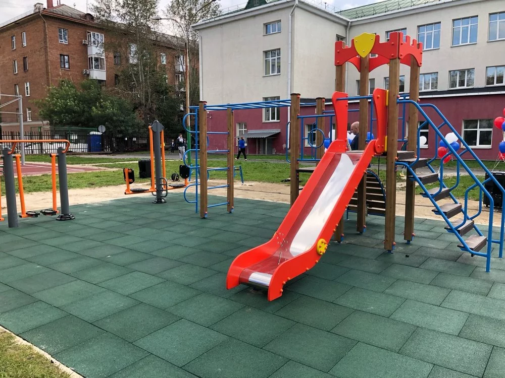 Теперь дети и не только, смогут заниматься физическими упражнениями и играть после занятий, а резиновое напольное покрытие убережет от падений и позволит заниматься любимым делом в любое время года.